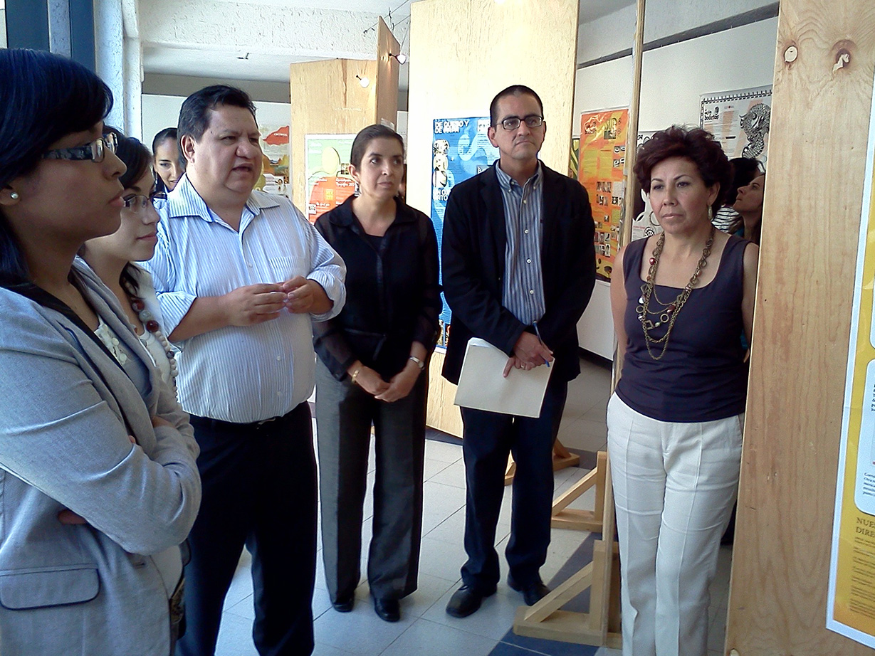 Inauguración de la Exposición por el 5° Aniversario de la publicación el Cajón de Bocetos. En la foto el Arq. Juan Martín Aguilera, Director de la División, la coordinadora del Cajón de Bocetos, Alma Pineda, El Director de Arquitectura, Dr. Mauricio Velasco y la Directora de Diseño Concepción Rodríguez. Fotografía Alejandro Santoyo |