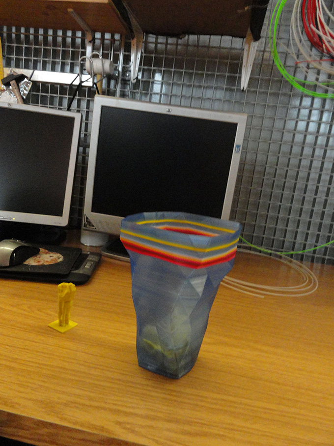 Entre las herramientas que se encontraban el lugar hubo una que realmente captó mi atención, no estaba destinada a la captura de imágenes ni a la comunicación o a la proyección, su función era construir piezas en tres dimensiones a partir de un software que permitía su diseño y trazo, se trataba de una impresora tridimensional, es increíble lo que una máquina puede construir a partir de nuestras ideas. Sería maravilloso contar con una herramienta de esta naturaleza, muchos de los objetos o personajes diseñados podrían cobrar dimensiones ante nuestros ojos, lo que trazas en dos dimensiones puede decodificarse y trasladarse a tres dimensiones, algunos de estos aparatos poseen a 60 materiales diversos que van desde la transparencia a la opacidad o de la dureza a la elasticidad dependiendo de la función y aplicación del producto que se esté diseñando, investiga y al igual que yo sorpréndete y ansía poder tener uno cerca.[ii]