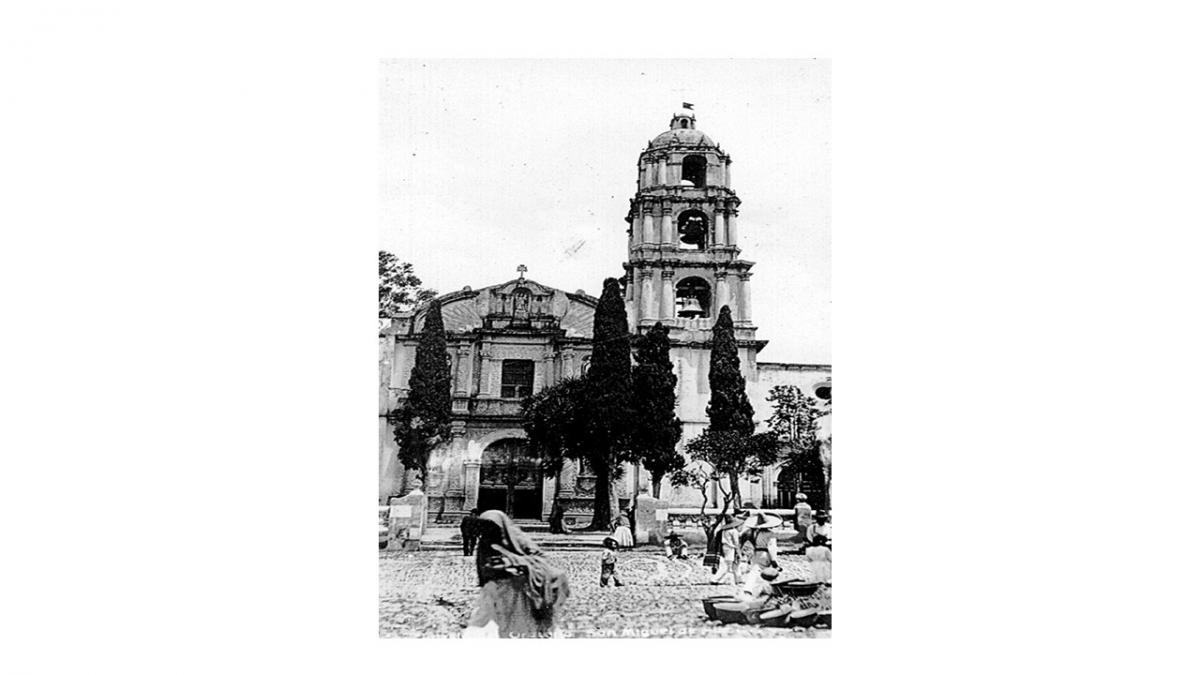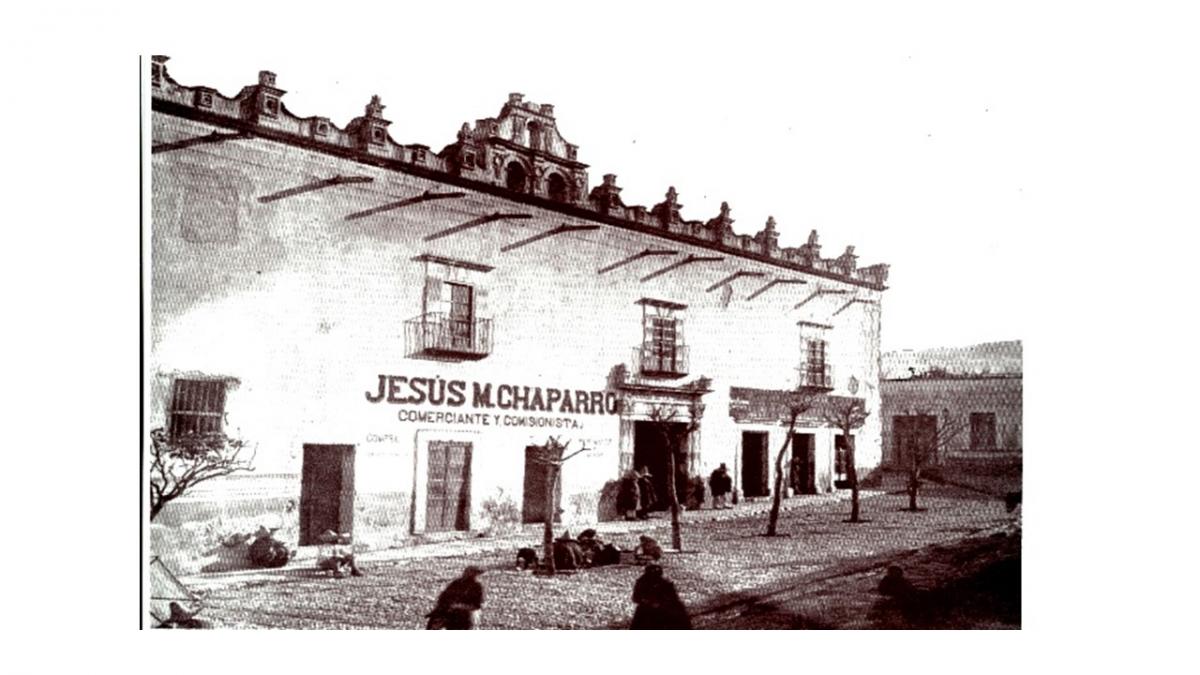 La imagen fue tomada a principios  del siglo XX y muestra la zona urbana del Colegio de  San Francisco de Sales así como del templo del Oratorio de San Felipe Neri, nótese que el comercio estaba establecido en este lugar desde siglos atrás ya que esta plaza fue la principal de la ciudad hasta finales del siglo XVIII.