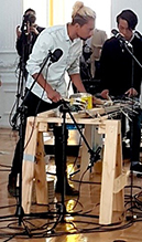 "... each piece is cut in different ways, some are perforated to explore different sounds, for example, harmonics [...] we design instruments in order to have certain resonances and we design other instruments like this little zither [points to a PC case with strings]. The idea is to use recycled and industrial materials to build structures that resonate... the main exploration is from physical space. How to place these sounds in space? How to spatialize them? But not only that, according to the sound characteristics each element must have a special position in the space, so that instruments do not ‘get stuck’ with each other, but at the same time it is possible to distinguish all the layers of sound that are happening.”[1]