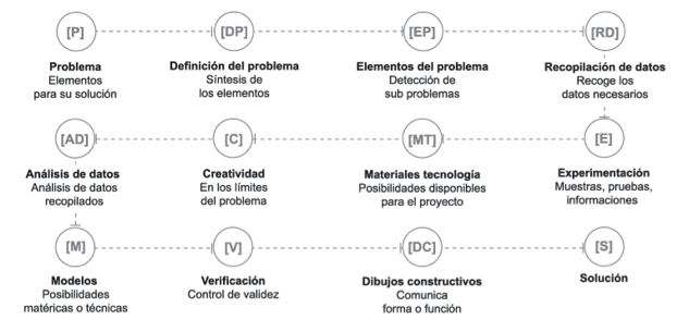 Método Proyectual de Bruno Munari (Gráfica realizada por Cynthia Villagómez).