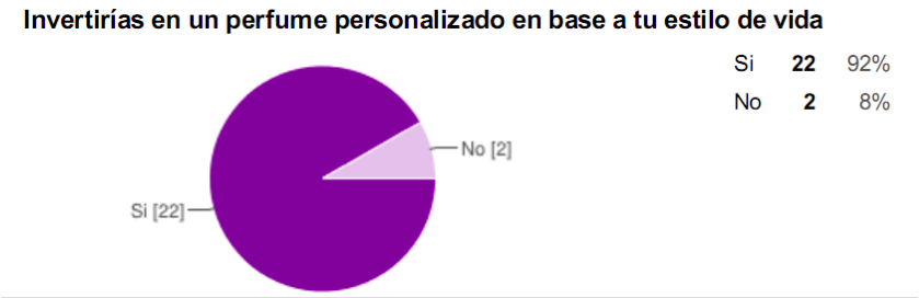 • El 92% de las mujeres dijo que si invertirían en un perfume personalizado, lo que implica que si la mayoría se considera romántica, entonces si adquirirían un perfume con esta característica.