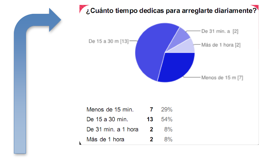 • El tiempo que tarda una mujer arreglarse en su mayoría son 15 a 30 min.