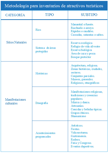 Fuente: Gerencia Nacional de Recursos Turísticos. (2004). Metodología para inventarios de atractivos turísticos. Ministerio de Turismo del Ecuador.