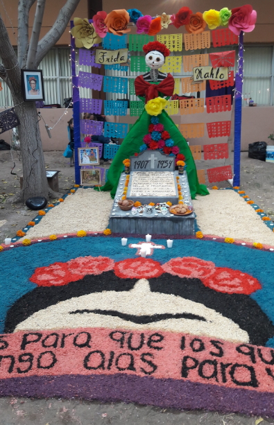 El altar es el elemento fundamental del evento “Altares y Tumbas”, ya que es la ofrenda tradicional para la celebración del día de muertos, éste se constituye en distintos niveles e incluye las ofrendas básicas relacionadas con los cuatro elementos naturales, elementos de olor, luz, agua y sal, así como la imagen del difunto, elementos religiosos y personales, así como la escenografía que caracteriza al personaje al que se le rinde tributo (imagen 2).