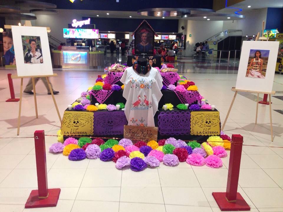 Imagen 8. Montaje en representación a altar a Frida Kahlo en vestíbulo hacia el cine del centro comercial Plaza Sendero en el año 2014.