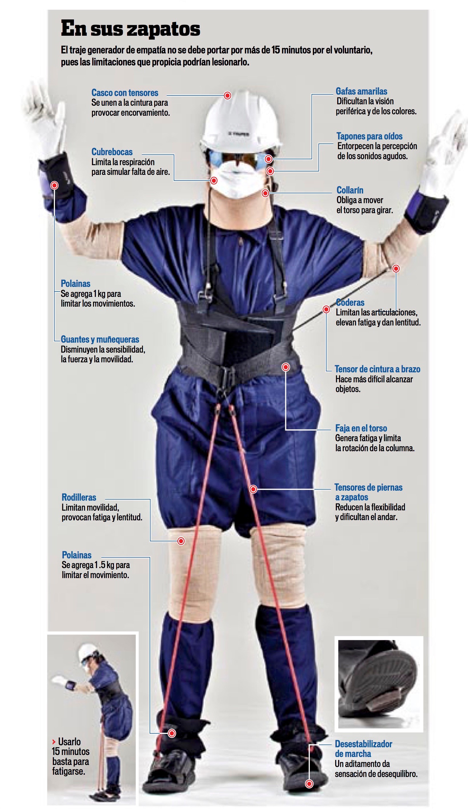 Figura 1: Traje de empatía diseñado por Annika Maya Rivero. Fuente: Periódico Reforma, fotografía: Odette Olguin, 2016.