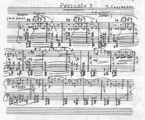 Veamos ahora copia de la partitura del tercer preludio, el cual está dedicado a su hija, la ahora Dra. Isabel Contreras: