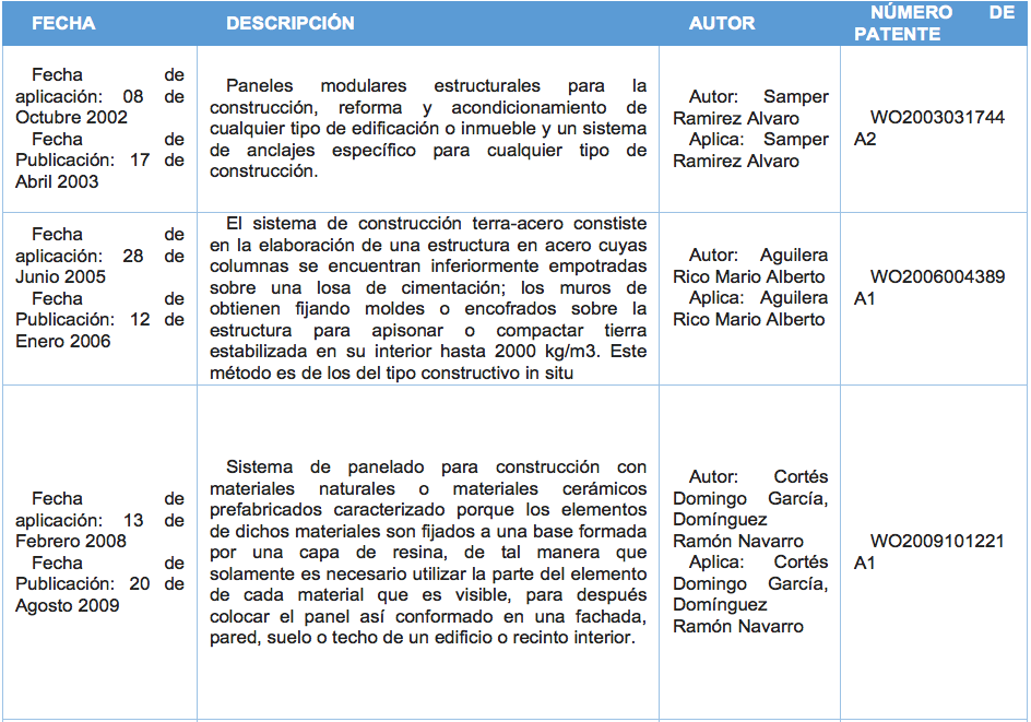 Tabla 1 Cronología de patentes sobre sistemas constructivos prefabricados o panelizados naturales