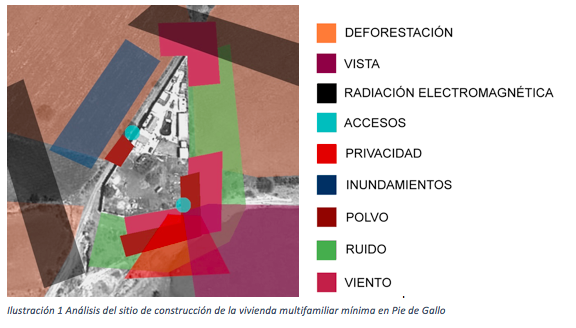 Ilustración 1 Análisis del sitio de construcción de la vivienda multifamiliar mínima en Pie de Gallo