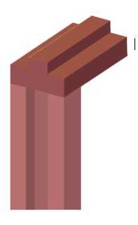 Lateral derecho de 10 x 5 x 229 cm con moldura macho al exterior y ranuras en el interior de 2 cm a cada 25 cm