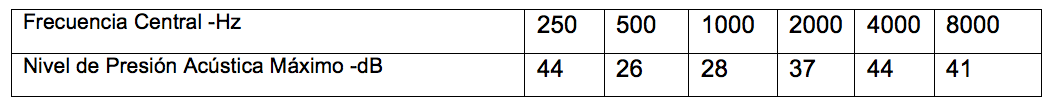 El diseño de la cabina está pensado para integrar tecnologías de aislamiento acústico que permitan cumplir con las especificaciones necesarias dentro de la normativa NOM-011-STPS para los niveles máximos permisibles de presión sonora al interior de una cabina audiométrica o espacios donde se realicen pruebas de audiometría los cuales se observan en la Tabla 1.