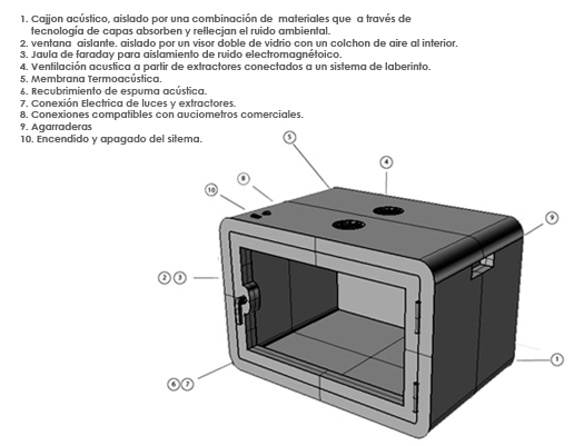 A partir de la necesidad de realizar pruebas favorables para la detección temprana de daño auditivo y de la disminución del costo del equipo, surge el planteamiento del desarrollo de una cabina sonoamortiguada que considere las necesidades del usuario final que en este caso es el neonato en estudio. De acuerdo a (Gómez 2015) una cabina sonoamortiguada, es un cuarto especialmente acondicionado con paredes construidas de materiales aislantes, los cuales no aíslan completamente el ruido pero lo atenúan en cierto nivel. Menciona también que el oído humano es sensible a frecuencias que van desde los 20 hasta los 20,000Hz, y debido a la naturaleza del ruido, las cabinas audiométricas deben ser capaces de atenuar considerablemente, el ruido de medias-altas frecuencias (750Hz-20,000Hz), que es donde se encuentran la mayoría de los ruidos del entorno cotidiano.
