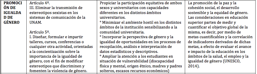 UNAM. (2013). Lineamientos generales para la igualdad de género en la UNAM. Disponible en: http://www.iimas.unam.mx/EquidadGenero/papers/LineamientosEquidadGeneroUNAM.pdf, última fecha de consulta: 21 de agosto de 2016