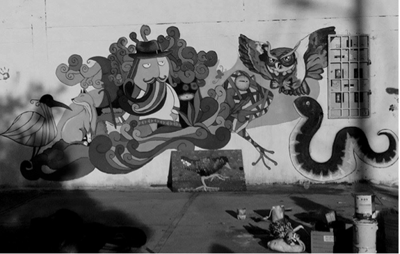 Otro tipo de intervención es en el espacio urbano, y como primer piloto se planteó un mural cuyo diseño nació del proceso de representación en clase, el cual fue pintado junto al humedal Tibabuyes, sirvió como ejercicio de clase y el cual, durante su ejecución, permitió la interacción de la comunidad académica presente con habitantes del sector, quienes están acostumbrados a otro tipo de intervención urbana y llegaban a preguntar intrigados por el tipo de gráfica que se estaba realizando. Al ser socializada la temática por parte de miembros de la comunidad académica, se desvelaba la función educacional que tiene la gráfica resultante del proceso de recopilación de datos descrito durante este artículo. Por otro lado en el barrio Lisboa, en conjunción con agentes distritales, locales y comunitarios, se desarrolló una propuesta de mural de mayores proporciones en un lugar con problemáticas sociales marcadas y que presenta un cierto grado de deterioro. La presentación a la comunidad de este proyecto arrojó conclusiones bastante satisfactorias, en cuanto a la respuesta que tienen frente a este tipo de temáticas y frente al potencial que tiene el desarrollo de intervenciones de tipo pedagógico en la ciudad.