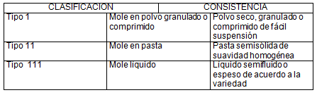 Tipo  111 Mole líquido Líquido semifluido o espeso de acuerdo a la variedad