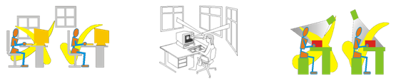 Se exhorta entonces, a buscar un nivel de iluminación suficiente para cada tipo de trabajo, utilizar superficies de trabajo mate para evitar reflexiones, asegurar un adecuado nivel de luminancia en el campo visual del empleado, situar el puesto de trabajo y las pantallas paralelamente a las ventanas con la finalidad de evitar reflejos, de lo contrario los sufriría si se orientara hacia ellas o el usuario tendría deslumbramiento si él se sitúa frente a ellas.