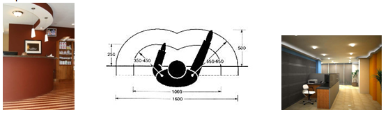 Se discute mucho en cuanto a cual es la forma adecuada para un espacio de trabajo, indudablemente es la que le permite al usuario alcanzar todo fácilmente. Algunos investigadores argumentan que lo más apropiado es una superficie curva continua que rodee de modo eficaz al usuario, o dividida en paneles laterales con ángulos de 50 a 55º que es donde se producen el número más bajo de movimientos corporales.