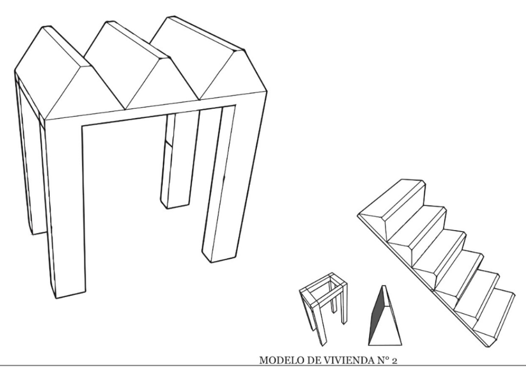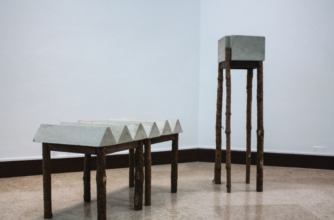 “Figura 3”, Nuevas arquitecturas a partir del rallo y el palafito. Escultura en concreto y madera. 2016.