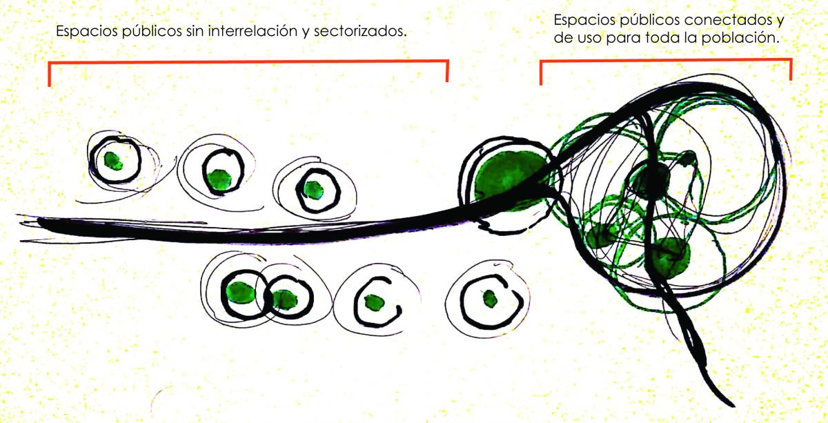 “Frente a la presión de la dispersión, la segregación y la segmentación del área urbana como un magma indefinido es fundamental redefinir los espacios públicos urbanos en las áreas de nuevos crecimientos.” (Borja, J., & Zaida, M. 2001, p 10)